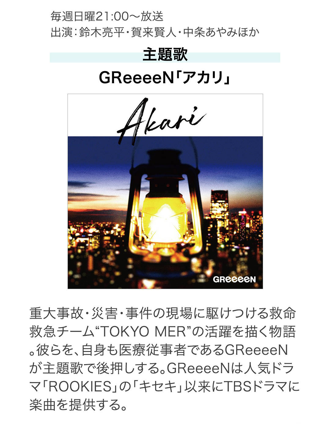 人気シリーズ作品「緊急取調室」の第4シーズンや韓国の大ヒットドラマが原作の「彼女はキレイだった」など、2021年7月にスタートした夏ドラマはバラエティに富んだ作品揃いだ。それらのドラマの主題歌は、Awesome City Clubやmilet、Vaundyなど今注目のアーティストが提供している。また自身も医療従事者であるGReeeeNは、医療ドラマ「TOKYO MER〜走る緊急救命室〜」の主題歌を務めている。auスマートパスプレミアム会員なら聴き放題のうたパスでは、そんな夏ドラマに華を添えた楽曲が聴き放題。ここで紹介する作品以外の楽曲もプレイリストにまとめられているので併せてチェックしよう。