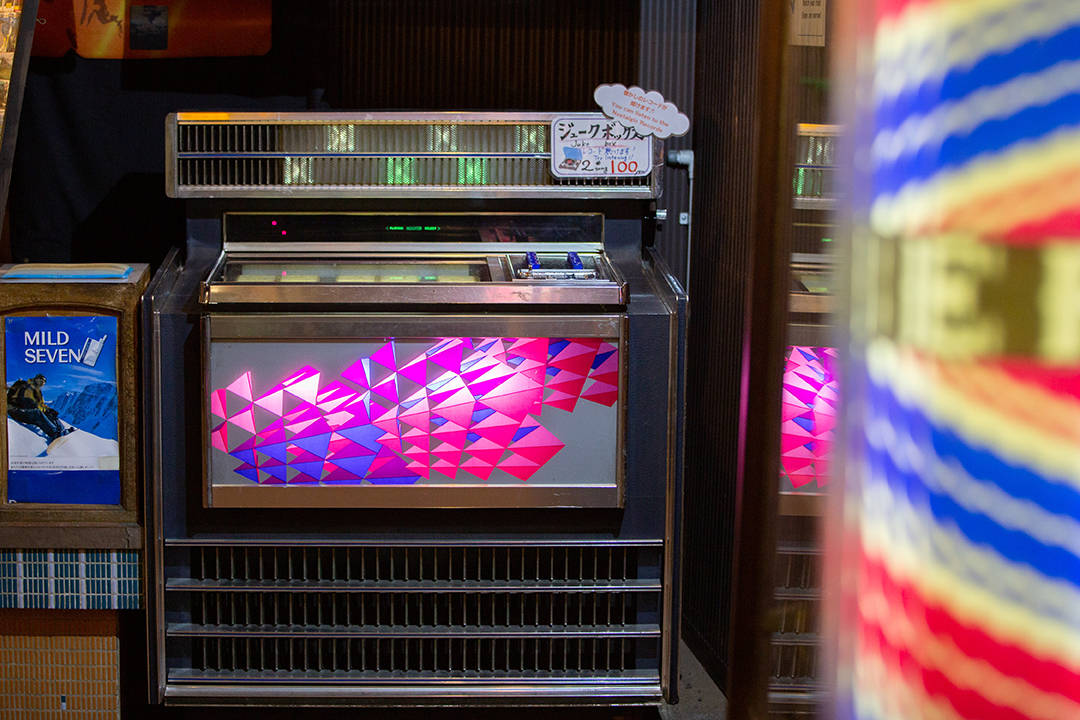 さらに奥へ進むと、なんとジュークボックスを発見! ジュークボックスとは内部にレコードが収納され、お金を入れると好きな曲が聴けるという“音楽の自動販売機”のことで、日本では1970年代前半に流行したそうだ。こちらのジュークボックスには、ピンク・レディーや山口百恵など、80年代頃に全盛を極めた懐かしの歌謡曲がぎっしりと入っている。「残念ながら現在はジュークボックスが故障しているのです」という黒木さんの言葉に、いつかまた復活することを願うばかりだ。